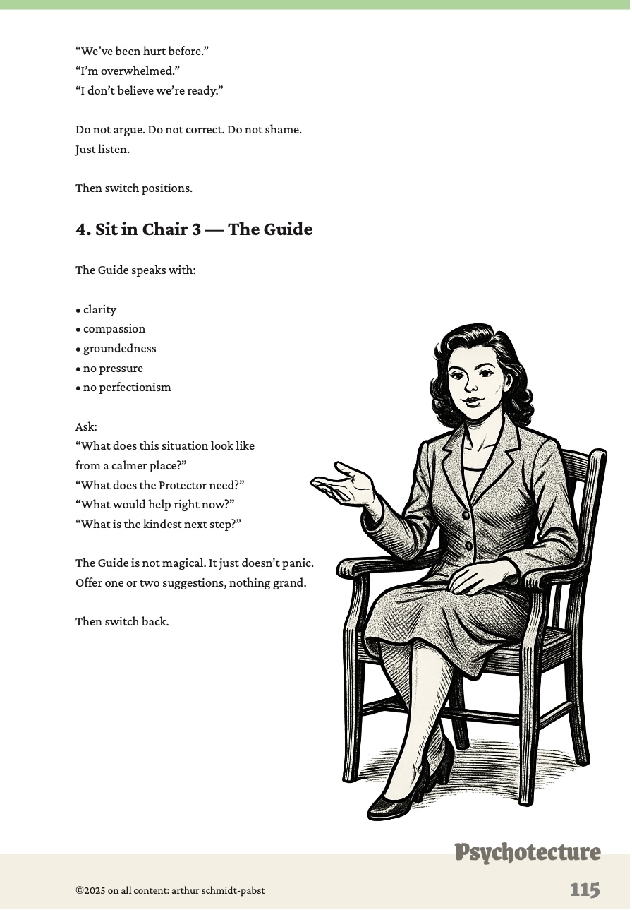 The same visual language was applied to long-form content: a companion handbook and a 400-page course. This is where AI work often fails — not at generation, but at layout discipline. The goal here was cohesion at scale: readable page rhythm, consistent typography, and illustrations that support the text instead of hijacking it.